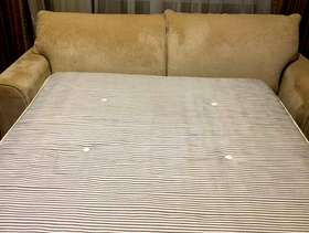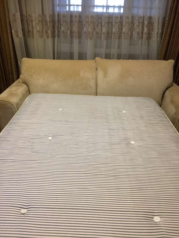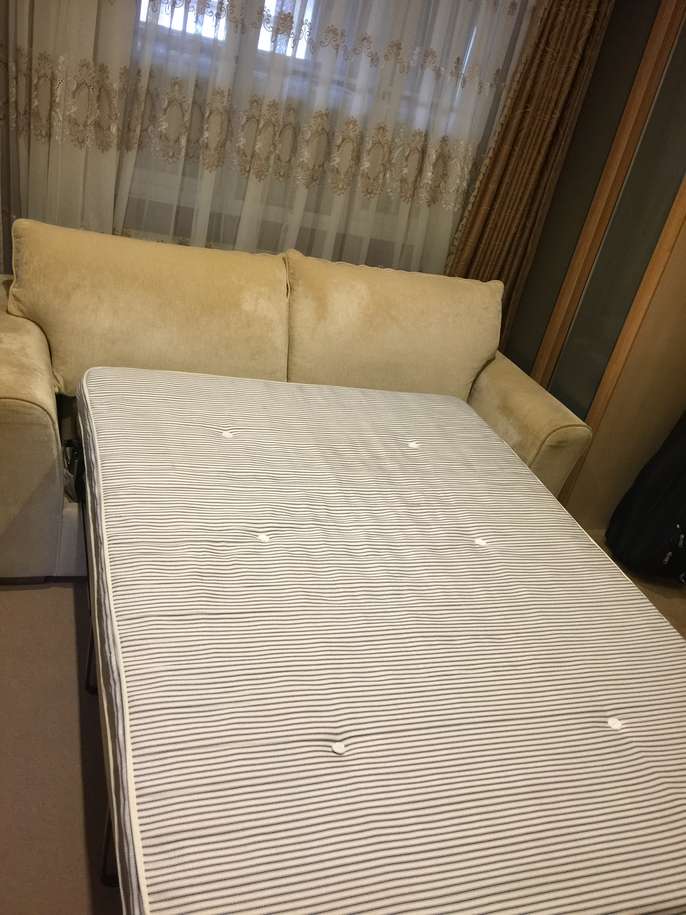 Nice sofa bed to be collect it for free this weekend. We need to renovate the house and needs to go , some stripes are loose but can be easy fixed