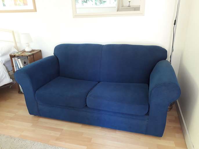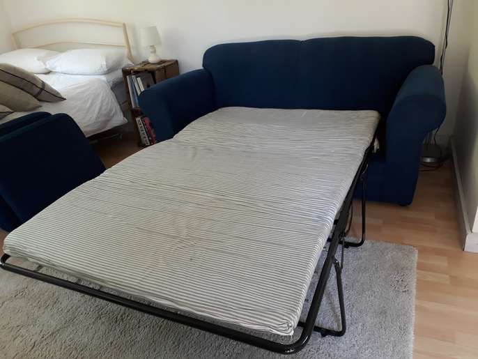 Ikea sofa bed. Double. Blue. Good condition. Got to go before end of Tuesday 31st Aug. Collect from Cranleigh. Steve 07900 551027