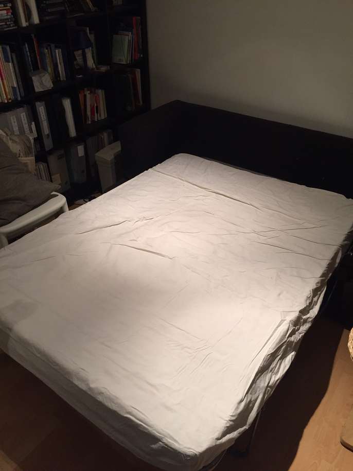 Sofa bed in good condition - we no longer need it and are freeing up space in our house. See pics to get a sense of how it unfolds. Dimensions: 200cms wide, 90cms deep, 70cms tall.