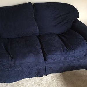 2 x navy blue sofas. One is a 2.5 seater (photo) the other a 2 seater. Removeable washable covers (just been washed in the hope that they find a new home). Need to be collected, Martins Wood area of Stevenage.