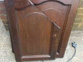 Solid Wooden Cupboard Doors - Sizes As Per Listing Detailed Below 2 x Doors 182.5 cm tall x 38 cm wide 3 x Doors 61 cm tall x 38.5 cm wide 1 x Door 41 cm tall x 61 cm wide Varnished in Dark Walnut, Were used on a cupboard project. Sizes as listed above. Collection from Hounslow, TW4