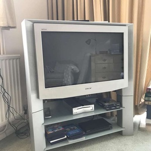 Sony WEGA TV in its glass stand. Old-fashioned looking, but excellent picture quality