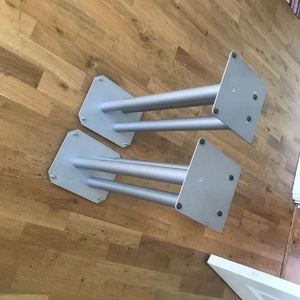 Two heavy steel silver speaker stands with spikes onto the floor. Appprox 80cm tall. To collect from n11