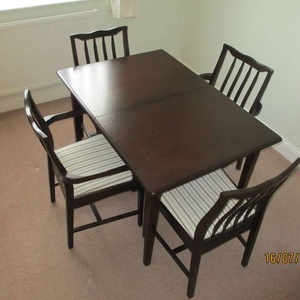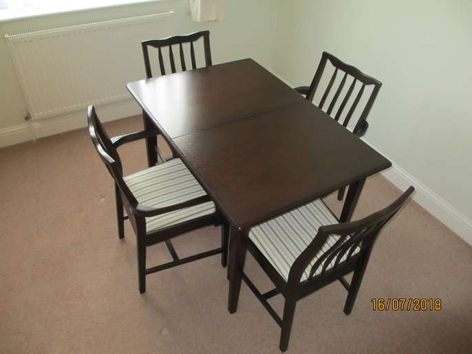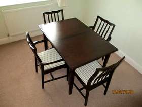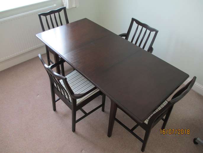 Dining Table 115 cm (extended 160 cm) by 80 cm 4 chairs to match (2 carvers) All excellent condition
