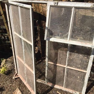Single glazed steel window frame with all glass panes. Has two opening windows - one full height, one small vent at top Fits opening 97cm wide by 104cm tall