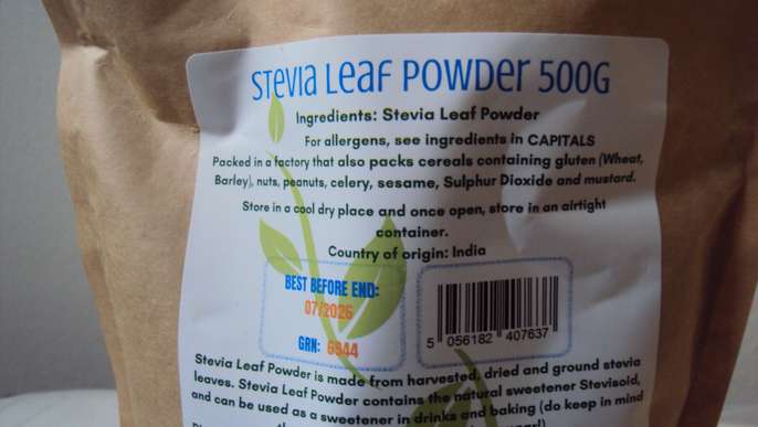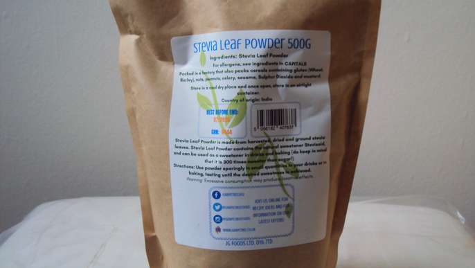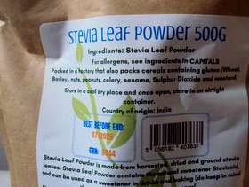 A 500g size pack of pure stevia leaf powder (not mixed with any other sweetener), in a self sealing tough paper pouch, made from harvested, dried and ground stevia leaves, GMO free and vegan, a very very little is a lot as it’s 300x sweeter than cane sugar, for use in drinks & baking, bought last autumn for a recipe and used only 1 gram, so now weighs 499 g. Stevia has zero calories, fat or sugar, and has a v low carb content and this pack of stevia is not blended with any other ingredient. If you’re reading this ad you probably know how to use pure Stevia, or how to calculate how much to use in a recipe. Please don’t taste it neat, it’s bitter. Collect in London NW11 halfway between Golders Green and Finchley Central tube stations, buses a 3 min walk. Free to park outside. If you say when, I’ll leave it in the black recycling box for you.