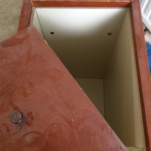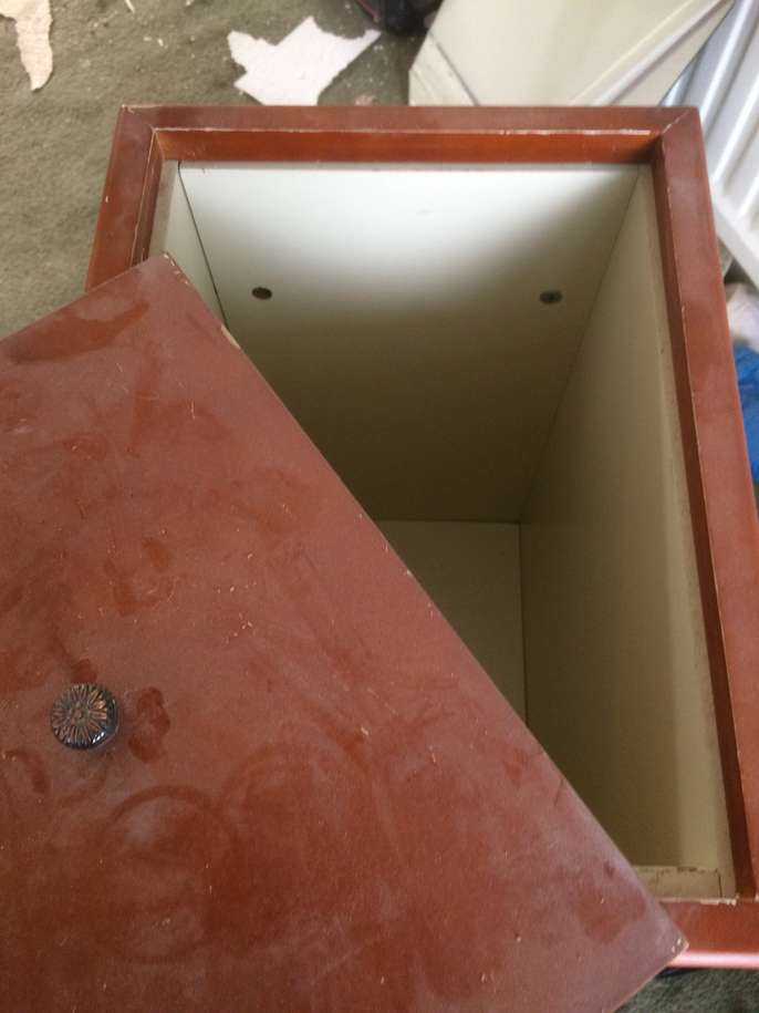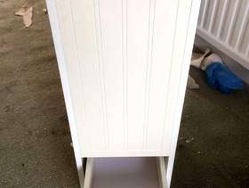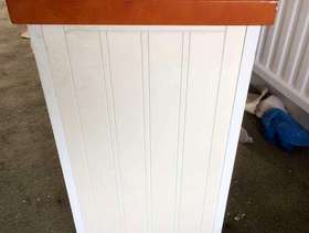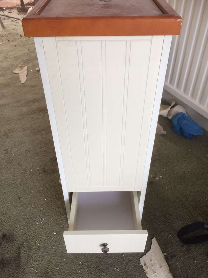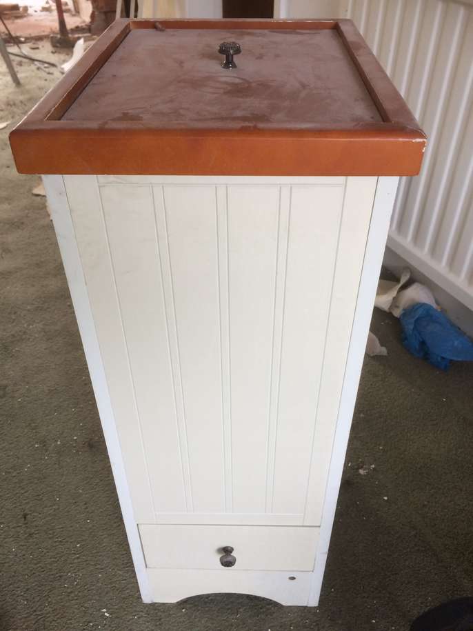 White unit which has a removable lid, could be for laundry and at the bottom is a small drawer. Photos explain better than I can!