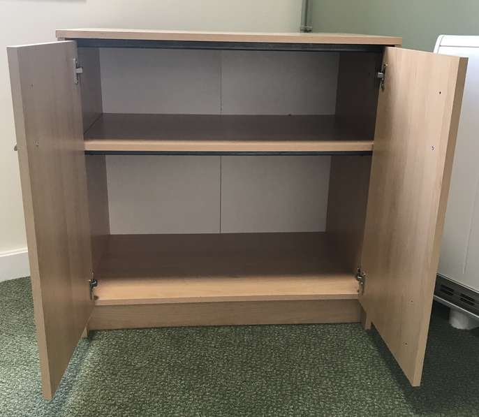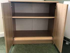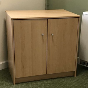 Beech effect storage cupboard - height 73cm x width 73.5cm x depth 49cm in reasonable condition. Does have signs of wear on left corner. Back and shelf has been strengthened as it used to hold bottles and cans. Free to collect. Phone or Text 077860804