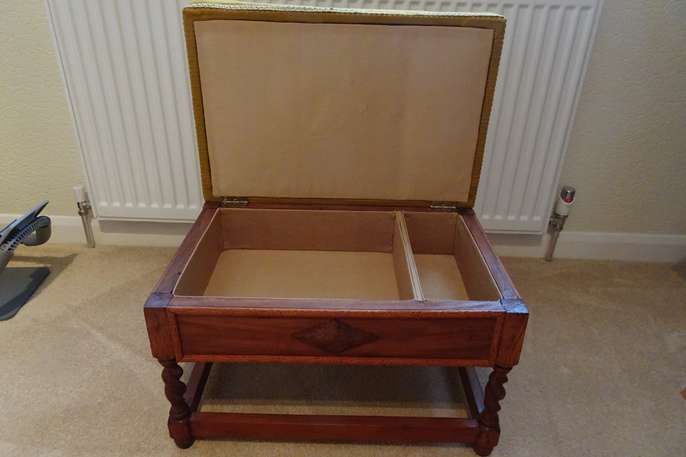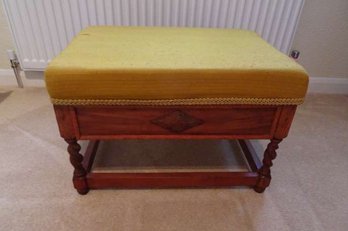 Storage stool with padded lift up lid.
