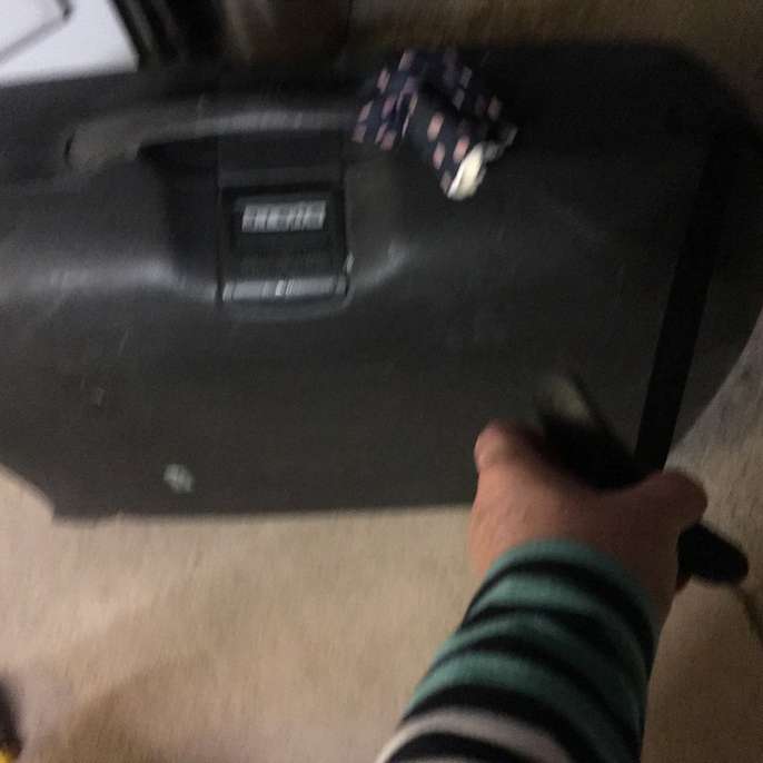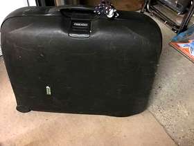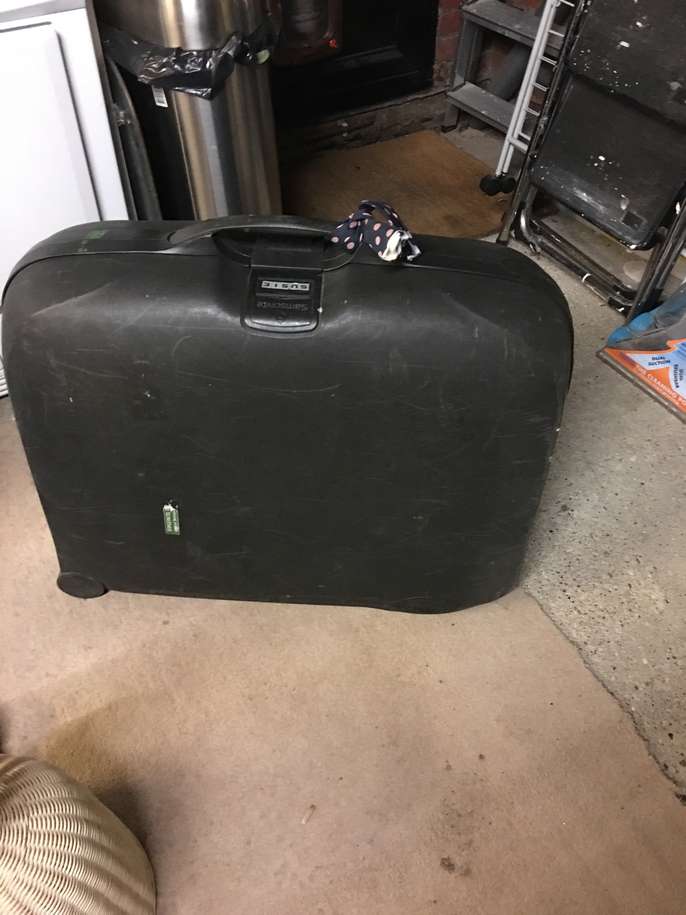 Large hard shell suitcase . Combination lock in good working order. On wheels moves well. Collect from Camberley.