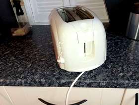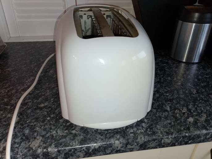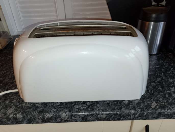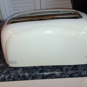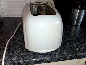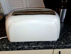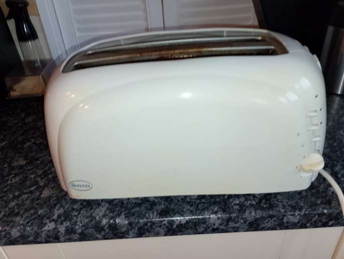 Swan four=slice toaster, no longer needed. Takes bagels , thick sliced bread, halved tea cakes, crumpets etc. Good working order. Colour is White, some very slight yellowing in places but hardly noticeable. Needs to be gone by Thursday 12th March. Collection from Morley Green or could deliver in Wilmslow area if necessary.
