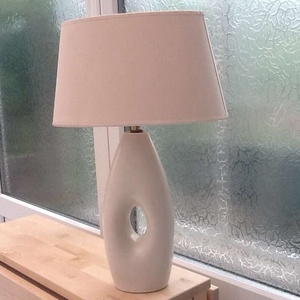 Cream table lamp. Pottery base. Very good condition. Cream base and cream shade. Base: 36cm high X 15cm wide. Free to collect.
