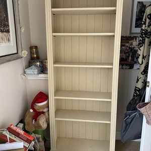 Ht 6’ 7”, width 2’ 7”, depth 1’ Cream painted solid wood, attractive, and in very good condition. Needs quick collection please.