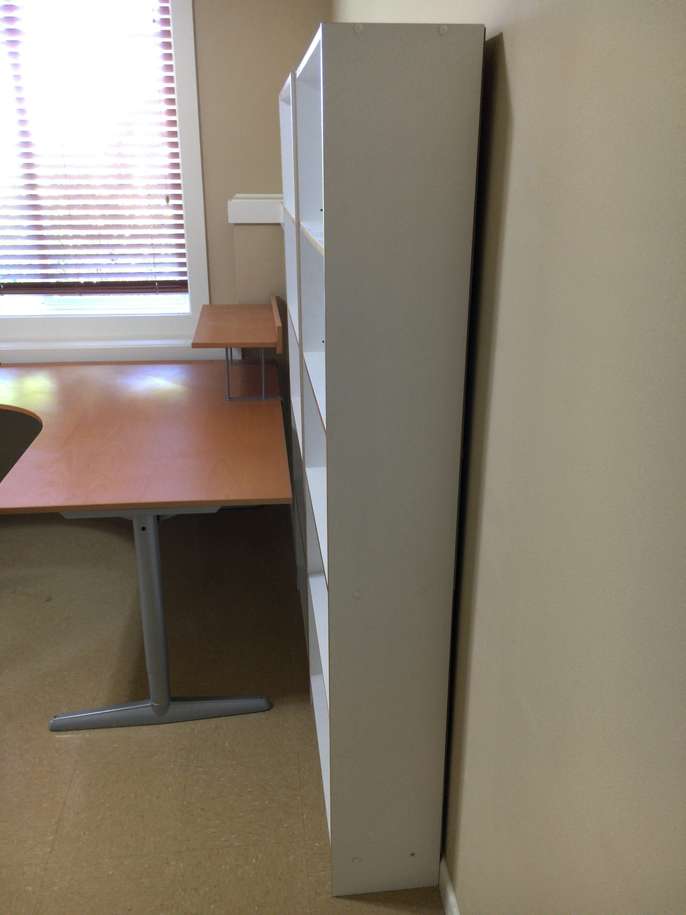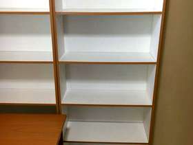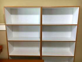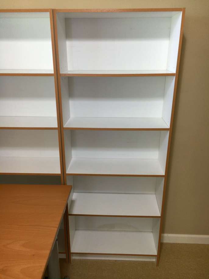 Approx. 6 ft tall, white bookshelves from Dania. similar to their current Jensen High Bookcase (https://daniafurniture.com/collections/office-bookcases/products/jensen-high-bookcase). Set of 4. Used, but still in reasonably good shape.