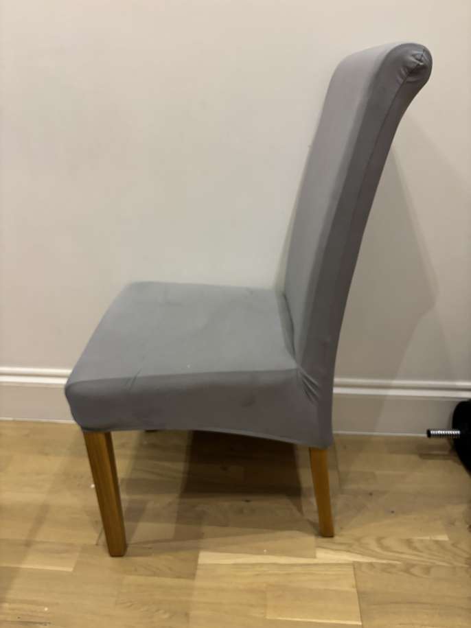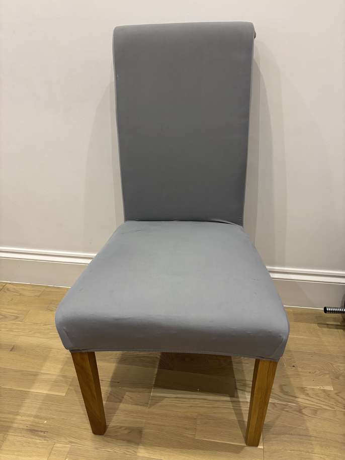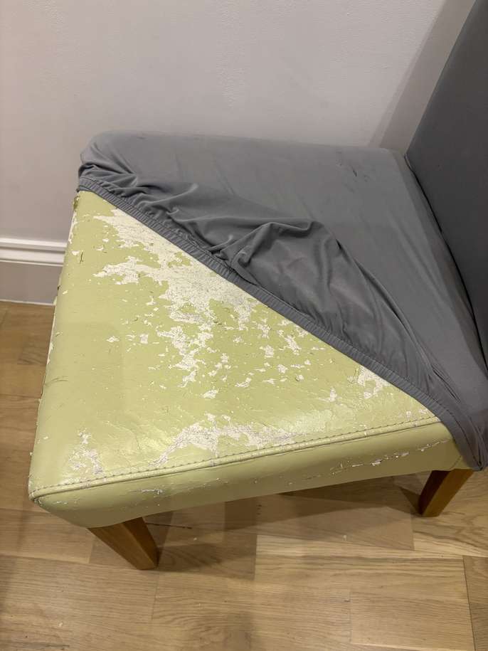 Ten dining room chairs This item is in Elstree and Borehamwood GB All the details Ten chairs. Leather is peeling but they are supplied with washable chair covers Category Furniture Request This Item Ask a Question Post Message
