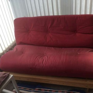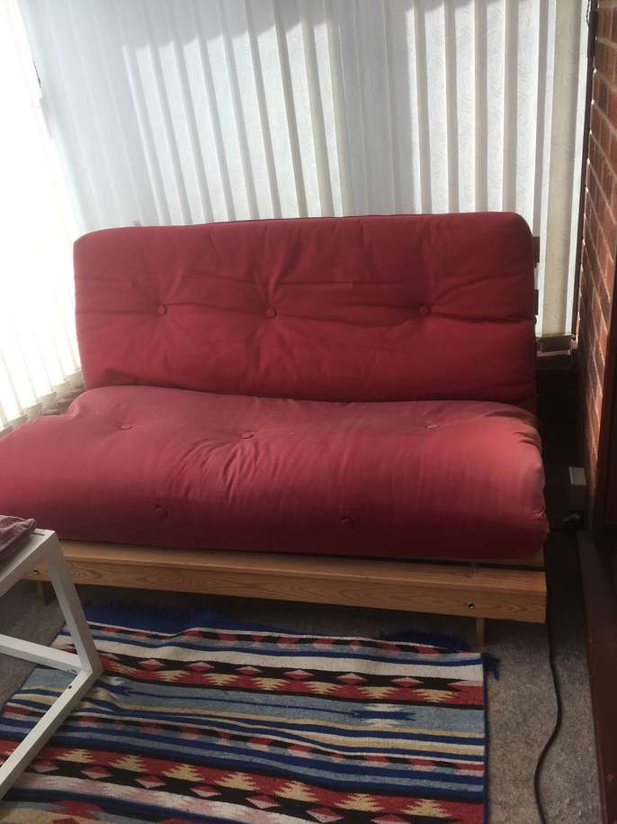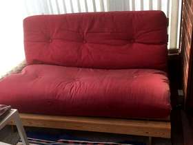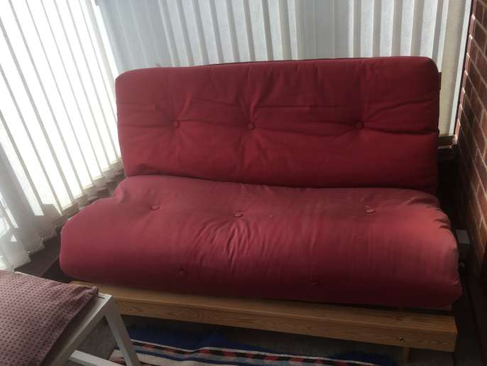 Tesco futon, approximately 7/8 yrs old. Frame in excellent condition. Cushion also in good condition, but faded. Could be re-covered, or a throw works equally well. Collection only. Free to a good home.
