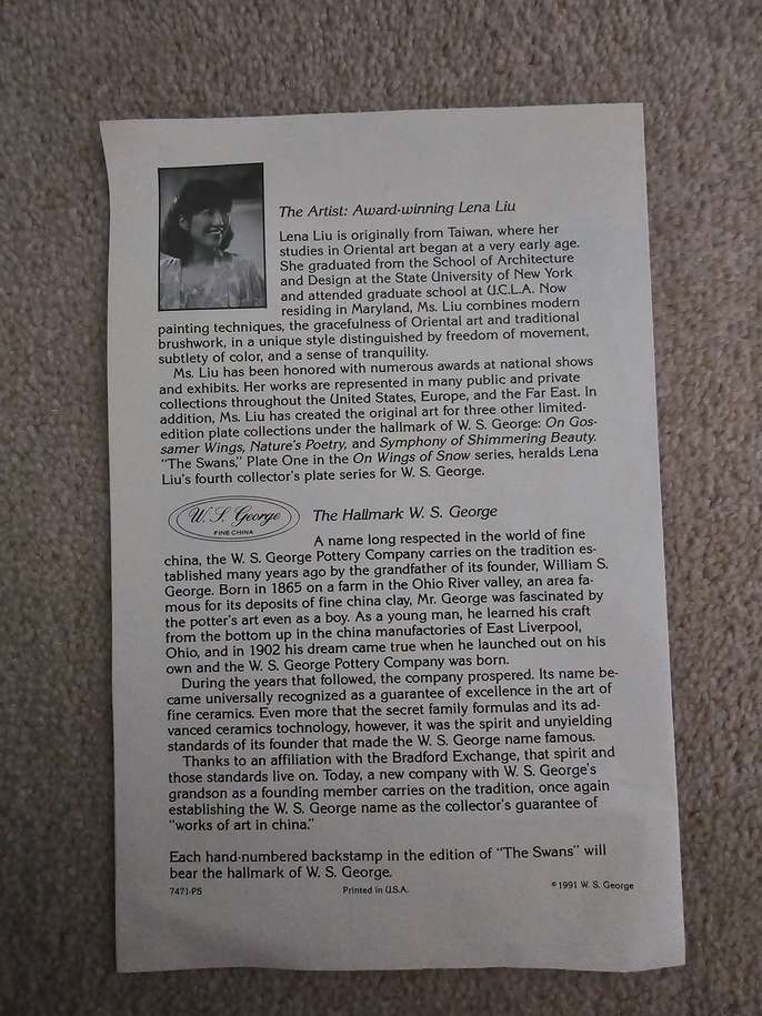 "The swans" decorative plate This item is in Hook Heath GB All the details Excellent condition. With certificate and original packaging 21.5 cm diameter Category Home & Garden Request This Item Ask a Question Post Message