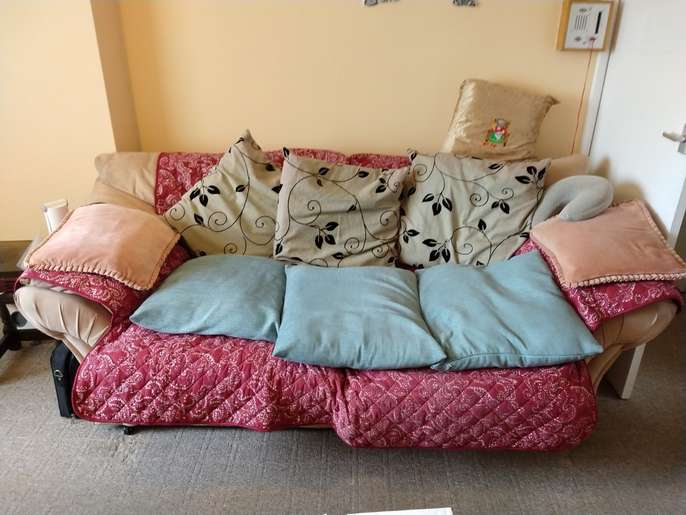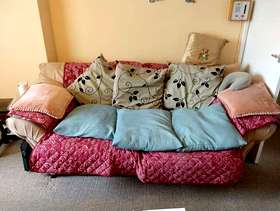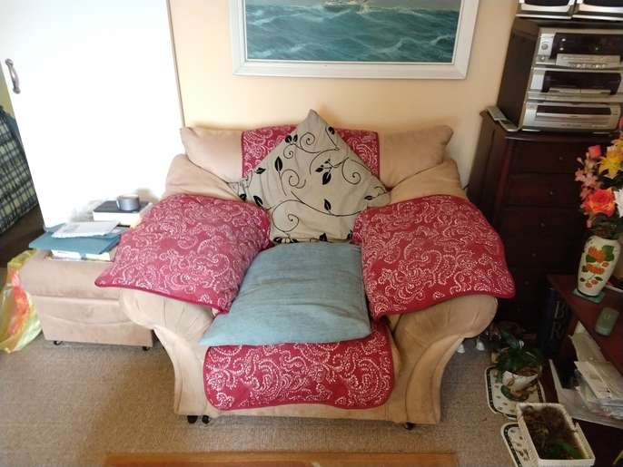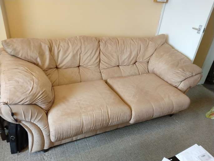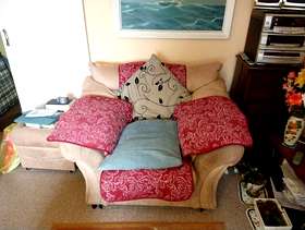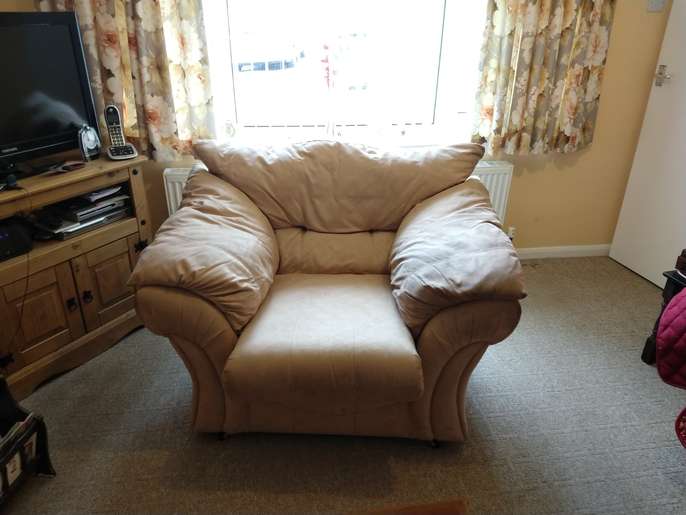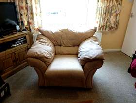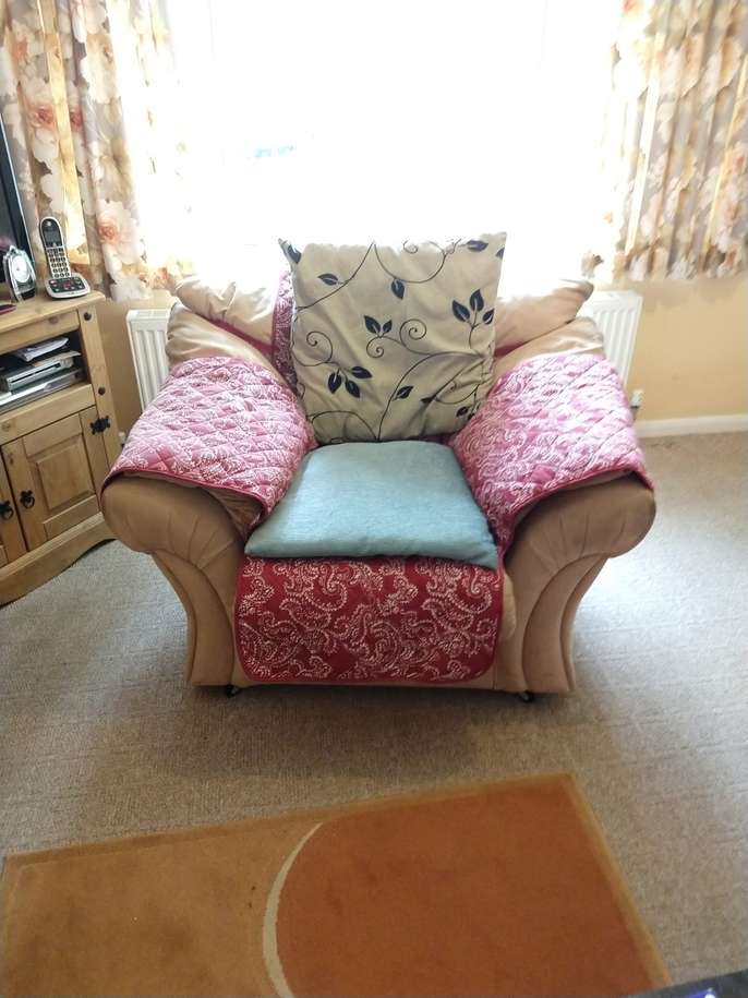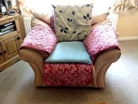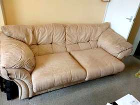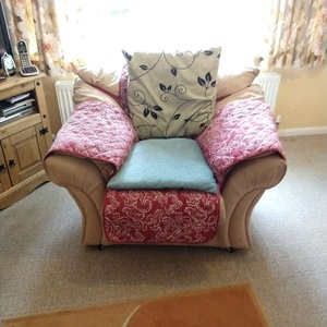 Three piece suite offered free to a good home . Two armchairs and a settee. Reasonable condition. No rips or tears. From a no smoking, no pets house. Very comfortable. Red washable seat covers also available if required. Quite large suite chairs approx 49"x 45" settee 80"x45" Moving house and no longer required. Must be gone by 20th July. Call Keith on 07980805377 This is at Tibshelf