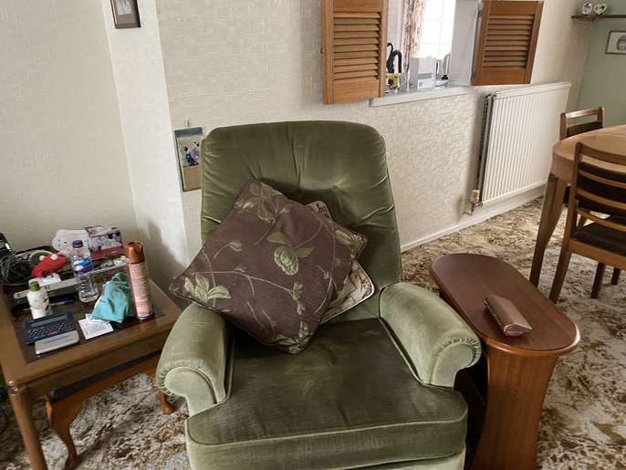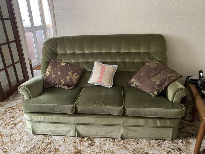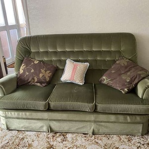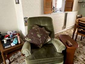 A vintage green Parker Knoll 3 seater sofa with 2 armchairs. One is a recliner . Fairly good condition a couple of stains that could be removed