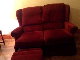 G Plan Two seater settee - one seat has lever operated foot rest. 2 chairs - both with lever operated foot rests Good overall condition with some wear.