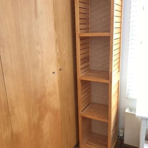 Timber veneer book shelf in great condition. Handy as it's narrow but tall and fits into small spaces. Dimensions - 176cm high x 36 cm wide x 30.7cm deep Free to good home. Must be picked up today from St Margarets - TW1