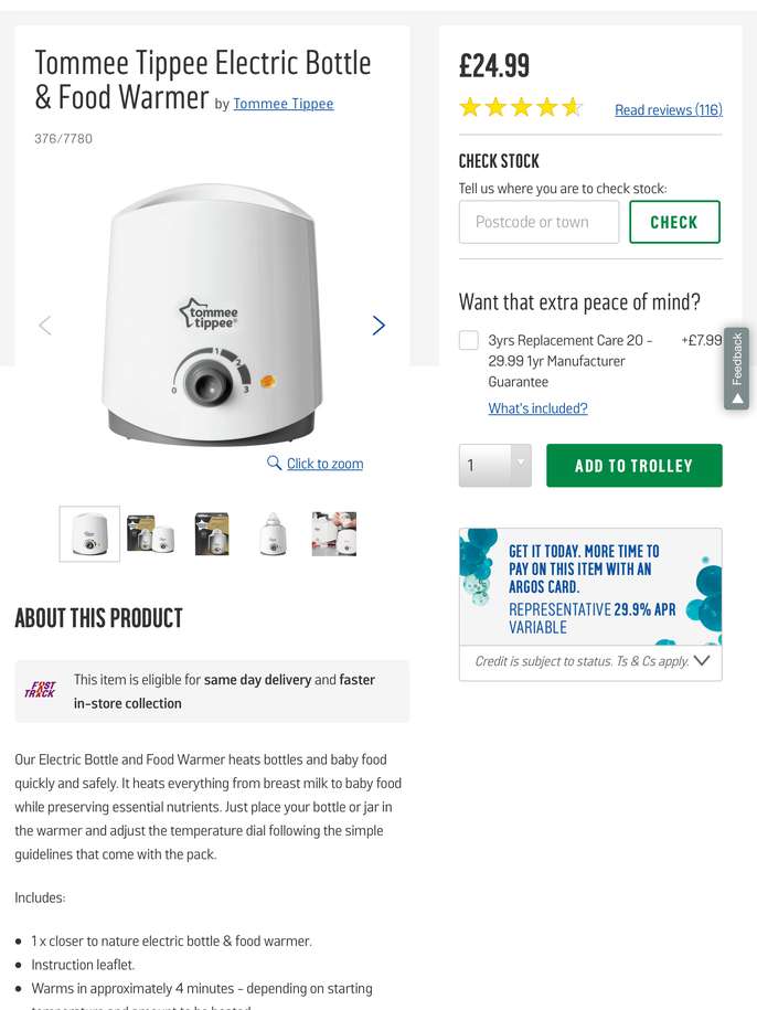 Tommie Tippee bottle warmer only been used once in perfect condition, £24.99 in Argos free I you can collect from Bl6 area.