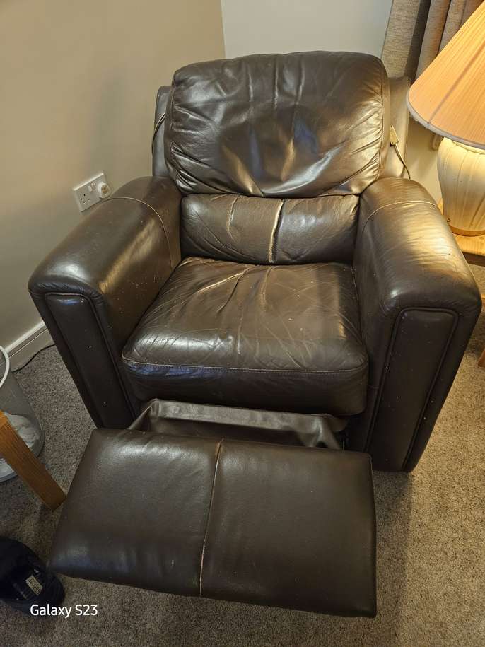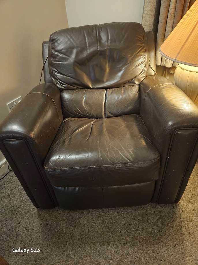Leather Recliner Chair. Top quality Leather. Manual. Very heavy so will need 2 people to move. Central Market Drayton location.