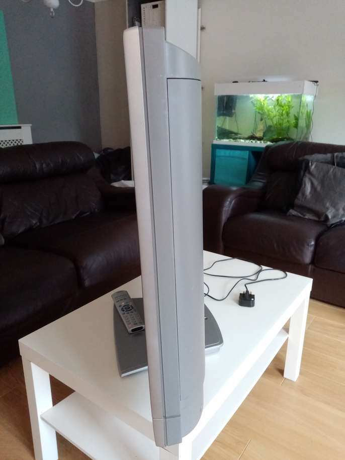 This is an old TV in working order and as such is very heavy. I would suggest two strong people to carry. It is not a smart TV and you would need a digi box or similar to watch free view channels. It has been wiped over with antibacterial wipes.