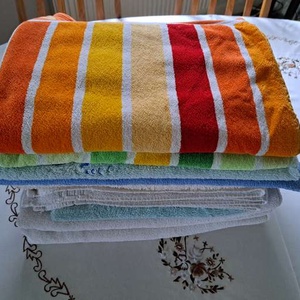 Towels, various sizes including hand towels, bath towels and bath sheets, plus 2 Speedo sports towels. Showing some wear but all in reasonable condition. Speedo towels only used twice.