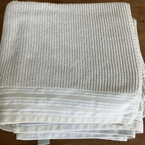 Beige towels with white hem.in pristine condition.john Lewis 100% cotton