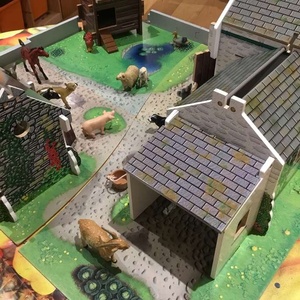Toy farm with animals. Farm yard and buildings easily assembled. Comes as flat-pack.
