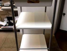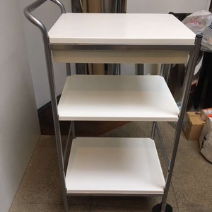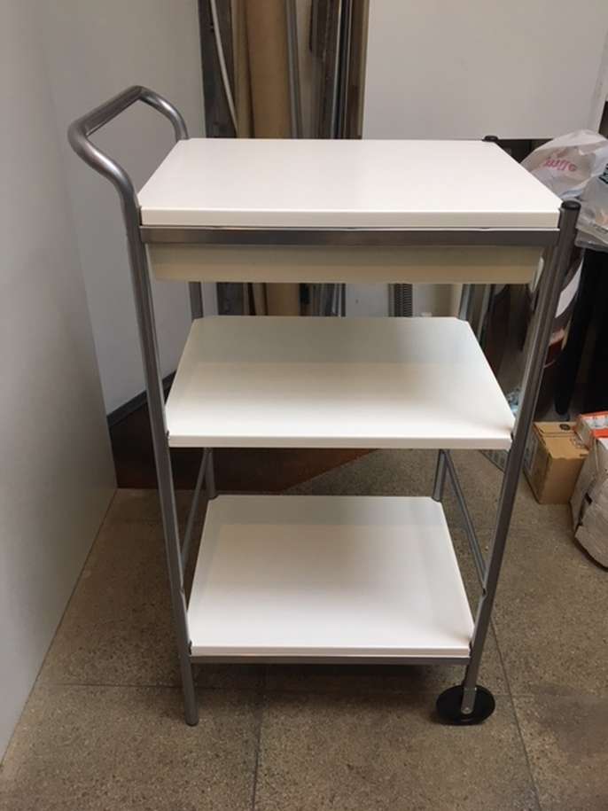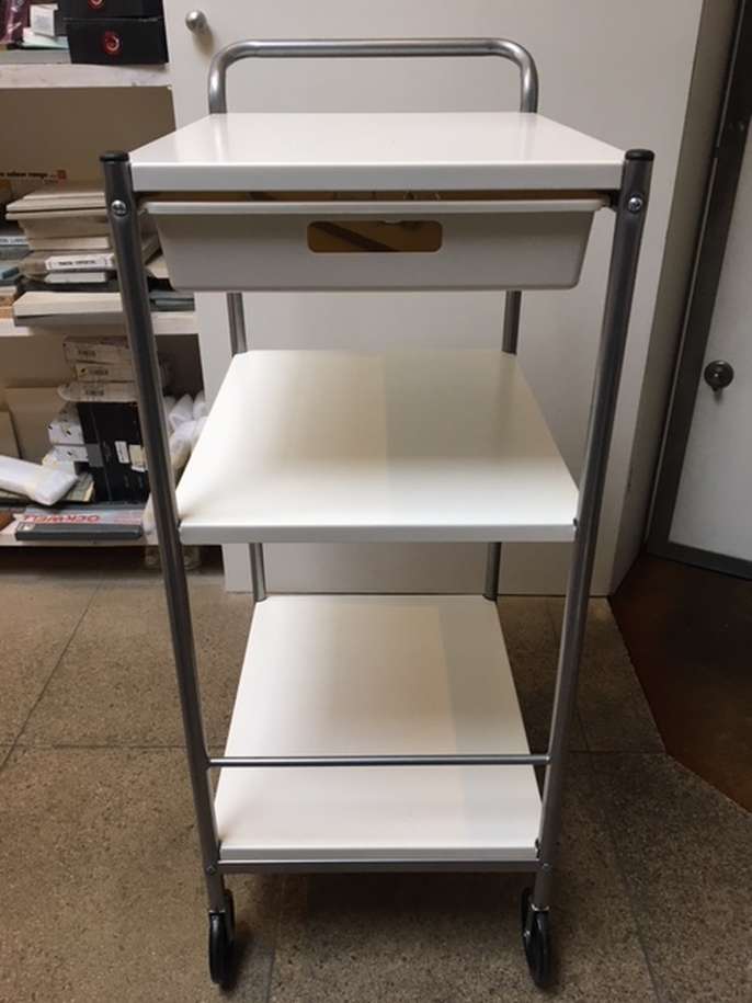 White Trolley with front wheels. 1 Shallow Drawer & 2 shelves 90cm (H) x 48cm (L) x 38cm (W)