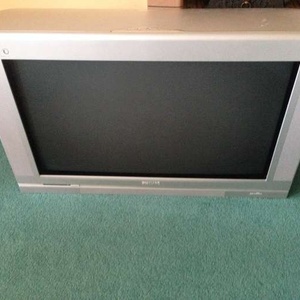 Large TV free...no HDMI port. It is the 'old style' - flat at the front but not thin - dimensions are: 37 inches wide, 24 inches high and 24 inches deep. It was brought over from Australia 10 years ago - so the plug and fittings are not UK (but it can be used in the UK using a simple adapter). Can be used for cable/satellite TV or for games to be played through - can plug in UK Sky Box, Wii, XBox, etc. It is VERY heavy and will need 3 adults to lift (or 2 very strong ones!). It comes with its own stand (which is designed to take its weight). Thanks.