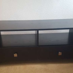 Black TV unit with two drawers. good condition. The dimensions are 44" wide x 16"high x 15"deep. Pick up from Cheadle Hulme.