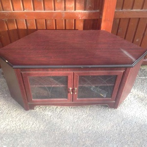Corner Tv cabinet with glass doors and two shelves in good condition