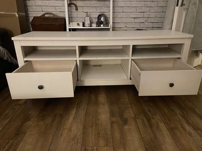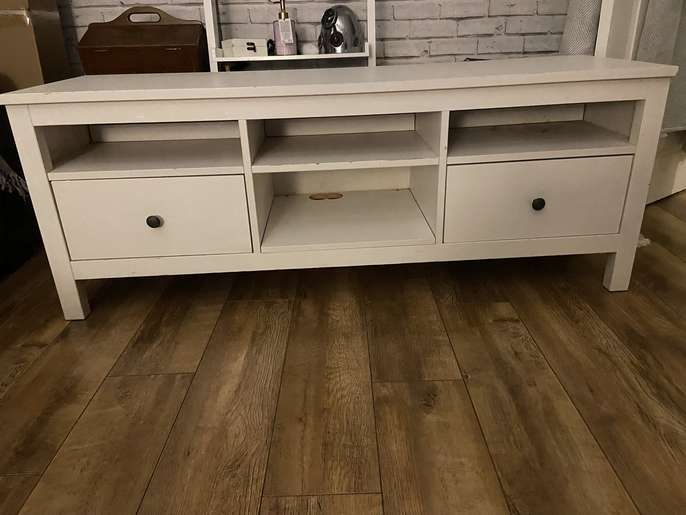 White TV stand. 150 cm wide. 47 cm depth. 57cm height.