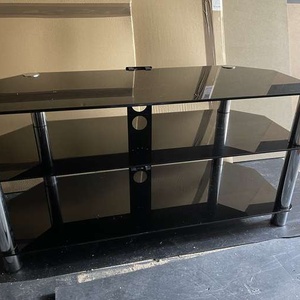Tv stand black glass and chrome
