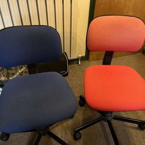 Quite warn office chairs. Variable height One red, one blue