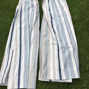2 x pairs (4 curtains) 135cm long blue striped curtains. Width of each curtain is around 85 cm gathered as you would have them. Could be made less or more gathered to fit. Excellent condition.