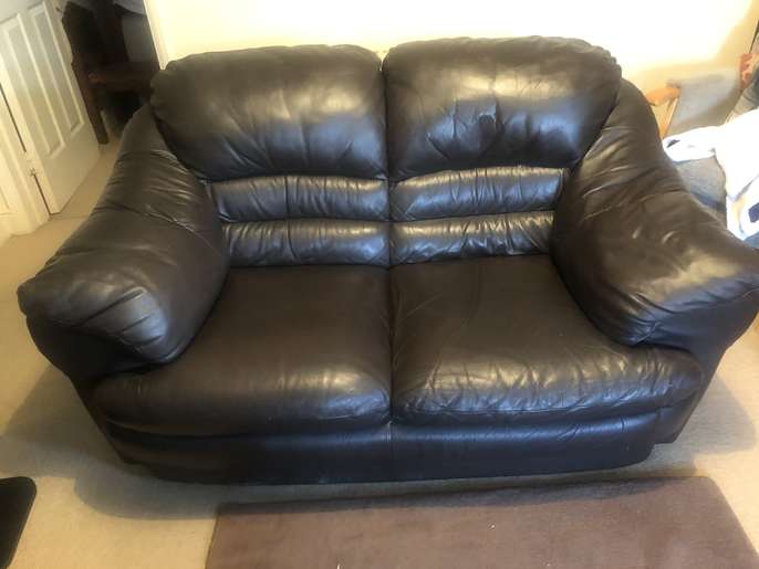 Two seater brown leather sofa