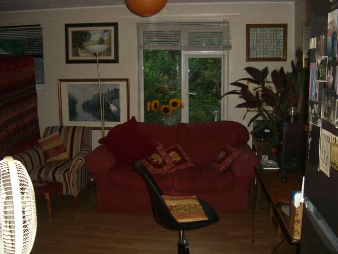 A two-seater sofa bed with fire label, good condition, terracotta colour no longer needed available for collection Wednesday to Saturday Mornings between 10 am and 12.30pm. Will need two people at least to carry away.