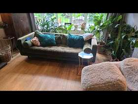 These are two green mills century style sofas - some fading and a small stain that will come out. Available for free in Didsbury
