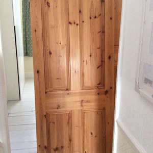 Two solid pine doors unpainted 77 inches by 30 inches. Only removed to replace with fire doors!
