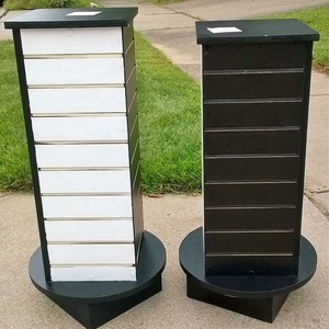 Two swivel slotted display stands.