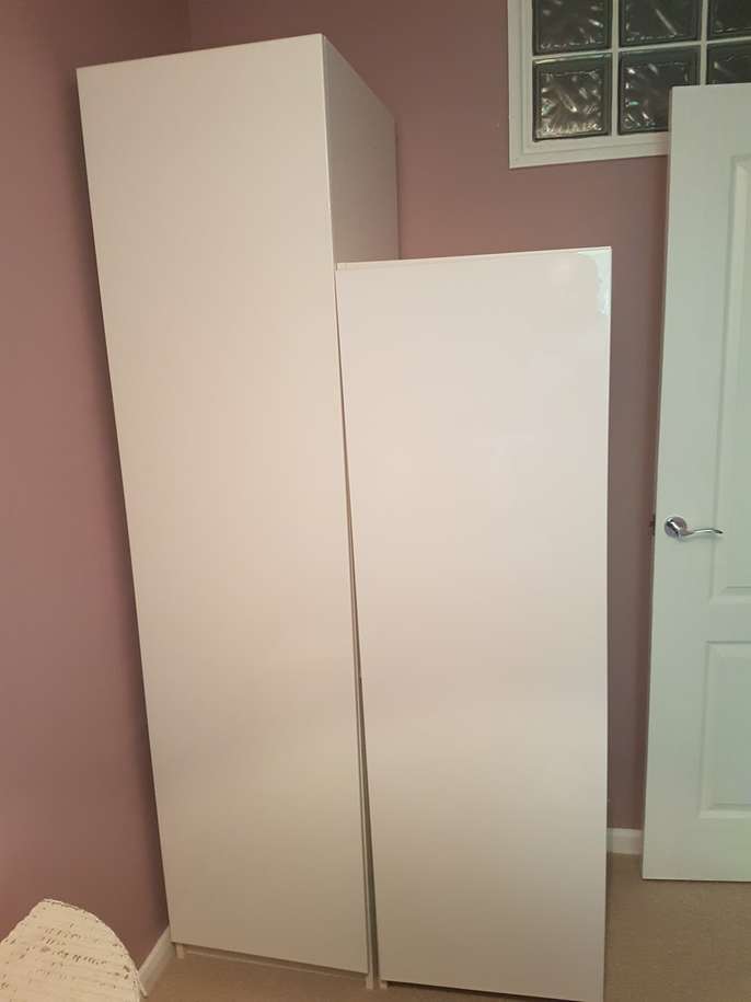 Free to a good home: 2 white Ikea wardrobes. Available for collection before 11th August.