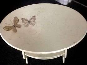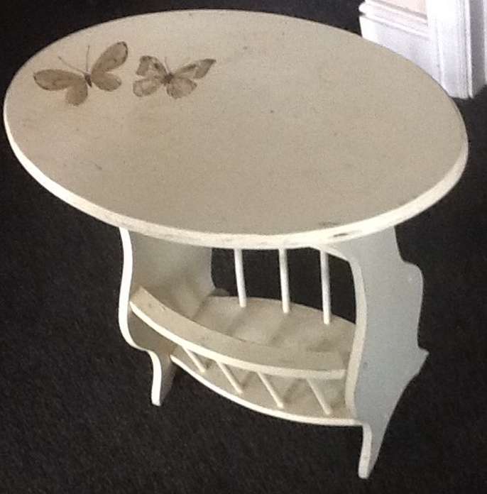 Up for grabs is a previously upcycled Side Table ready to use as is, or perfect for new treatment at your own hands :-) This is wooden and good condition structurally. Size is approximately 23" wide at widest point, 15" deep and 22" tall. Should easily fit into most cars :-) We live in a small hamlet called Thorney, which is about halfway between Kingsbury Episcopi and Langport. Area postcode is TA10 but might help knowing we're very close to where the Lowland Games are held out in the countryside. We work from home so collection most days after 1pm is possible.