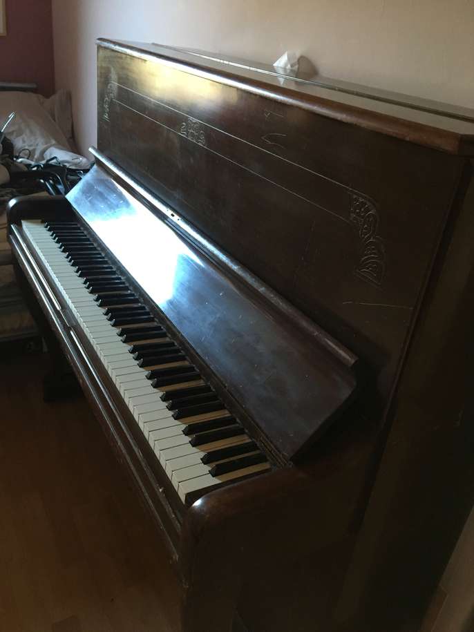 This is a nice piano which would suit a school pupil or amateur. Not too loud, nice round tone. Keys and pedals are all working. Needs tuning. Last time tuned about 2 years ago. If you would like to have it, you will need to arrange to remove it. On the ground floor. Two small steps at the front door.