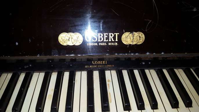 Osbert upright piano with stool. Dark wood piano unused for a number of years but still in working order. Needs collection from SE London.