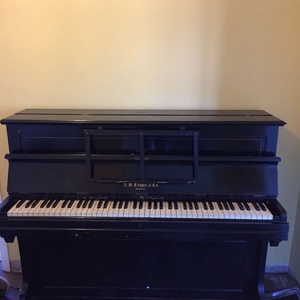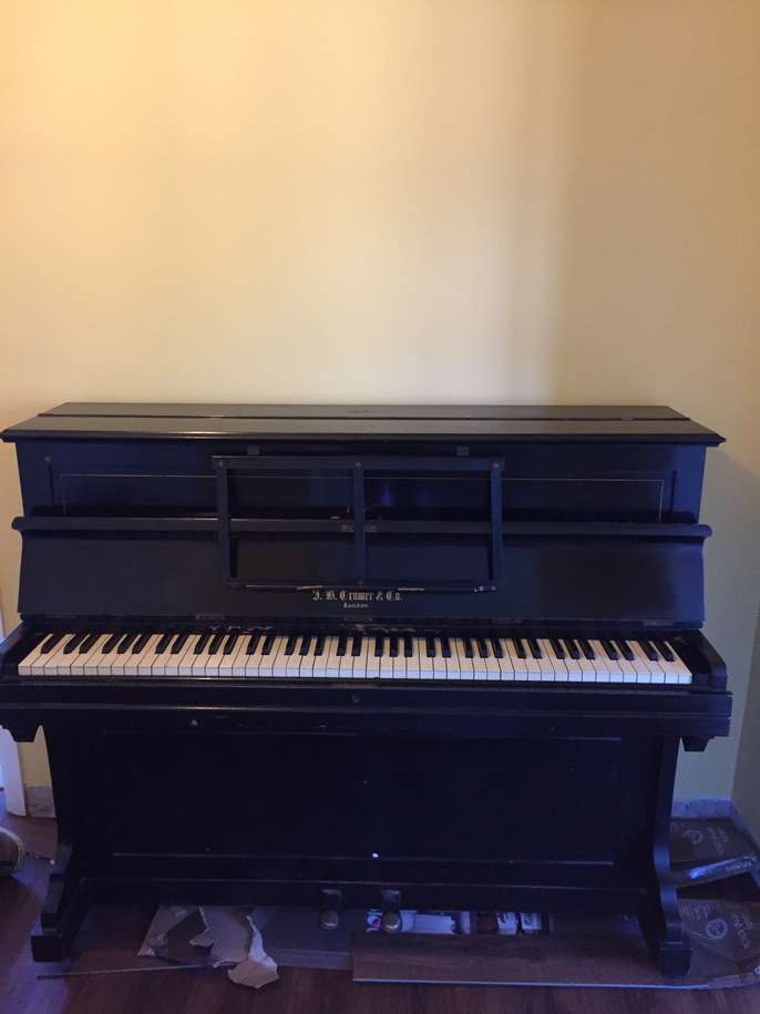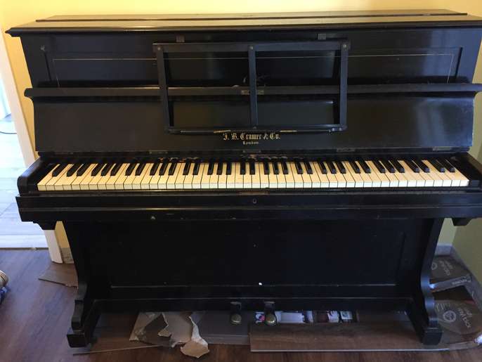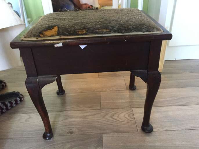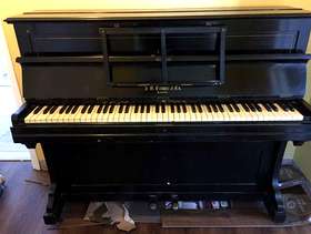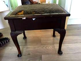 Soft pedal needs repairing and stool needs reupholstering- otherwise in working order.