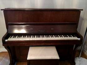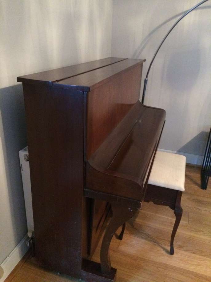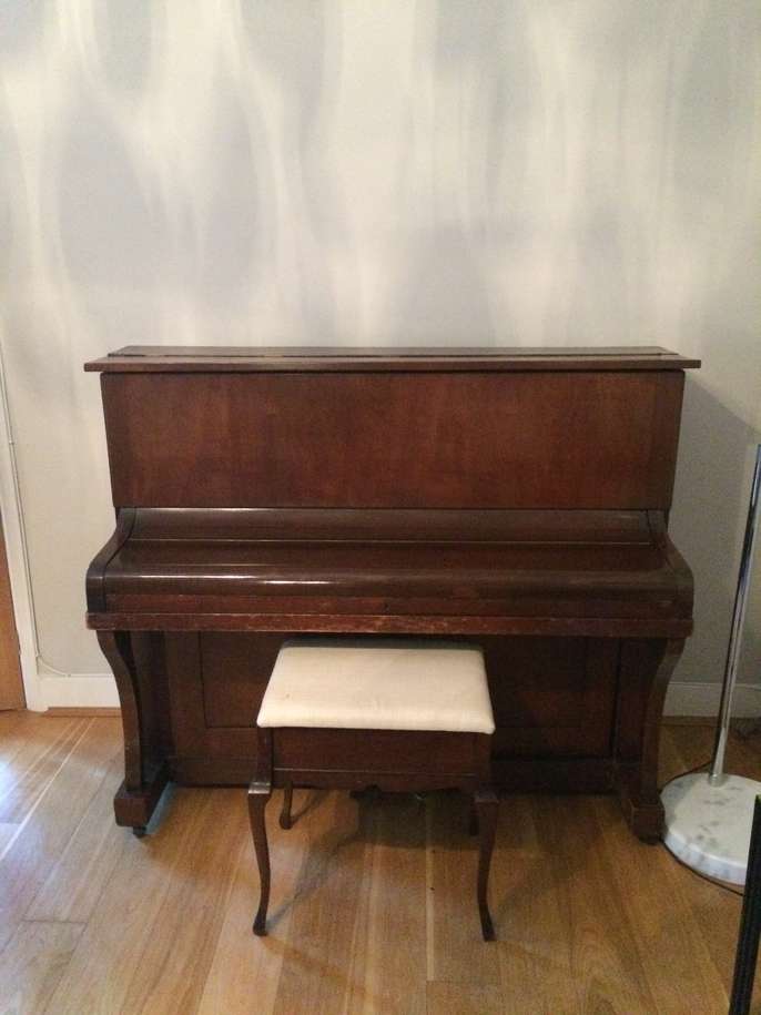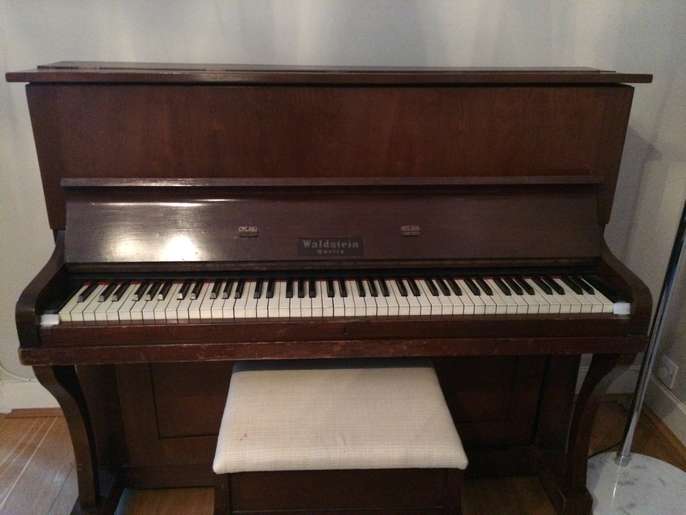 Brown upright Waldstein piano with matching stool. Has been tuned recently but is not completely pitch perfect (according to the professional). To be picked up from walton on Thames